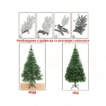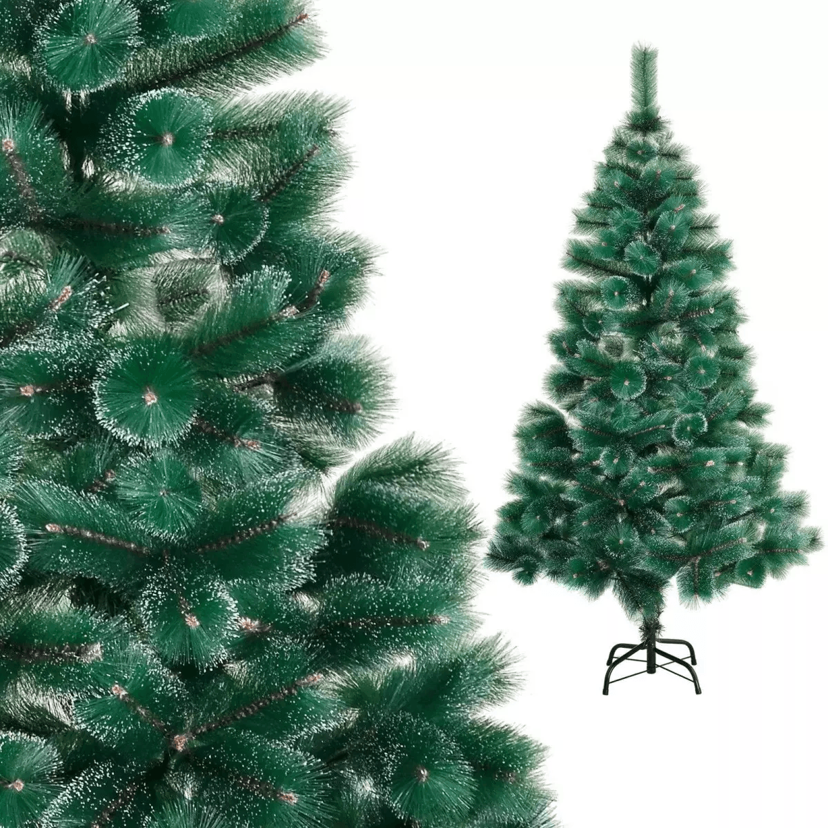Το δέντρο είναι κατασκευασμένο από υλικό PVC υψηλής ποιότητας, το οποίο του προσδίδει ρεαλιστική και συμπαγή εμφάνιση. Οι μακριές πράσινες βελόνες με τις λεπτές, ανάλαφρες άκρες δημιουργούν μια αίσθηση αφροσύνης και όγκου, που θυμίζει φρεσκοχιονισμένα κλαδιά.
